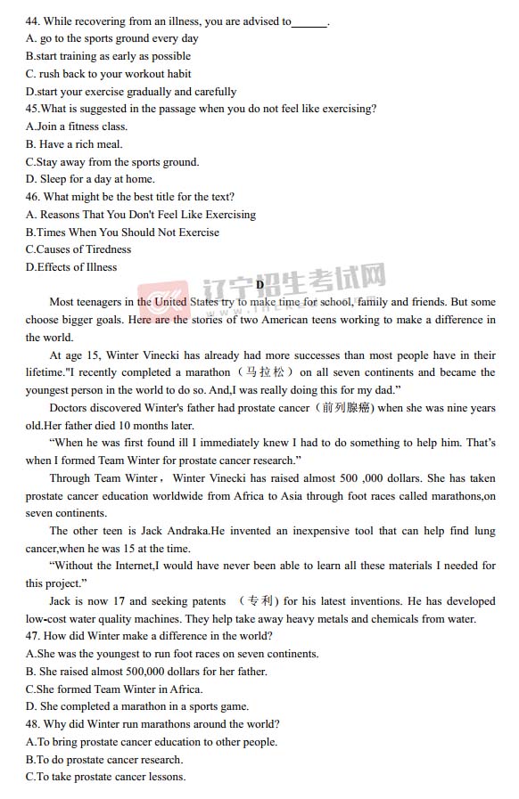 本文关键词:2020年成人高考高起点《英语》真题及答案